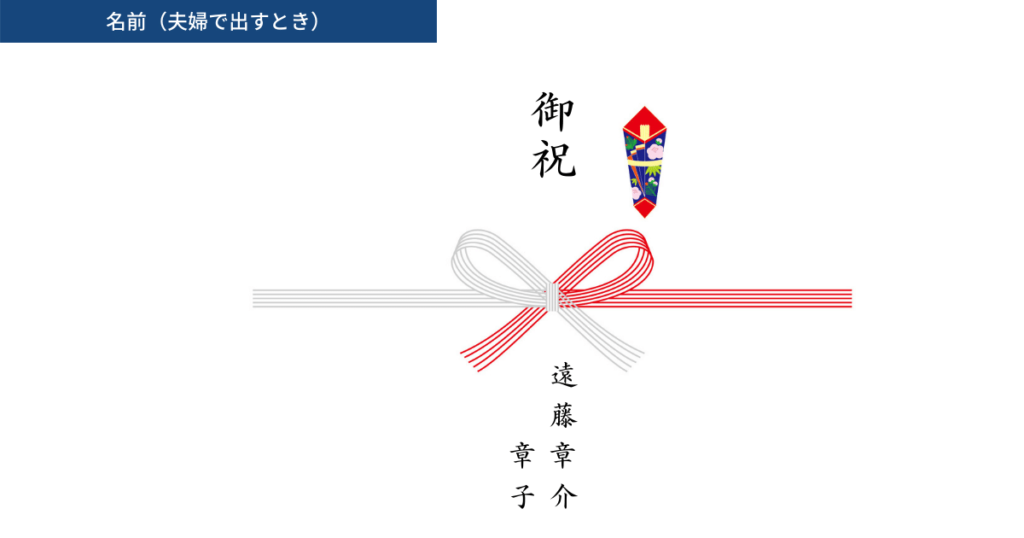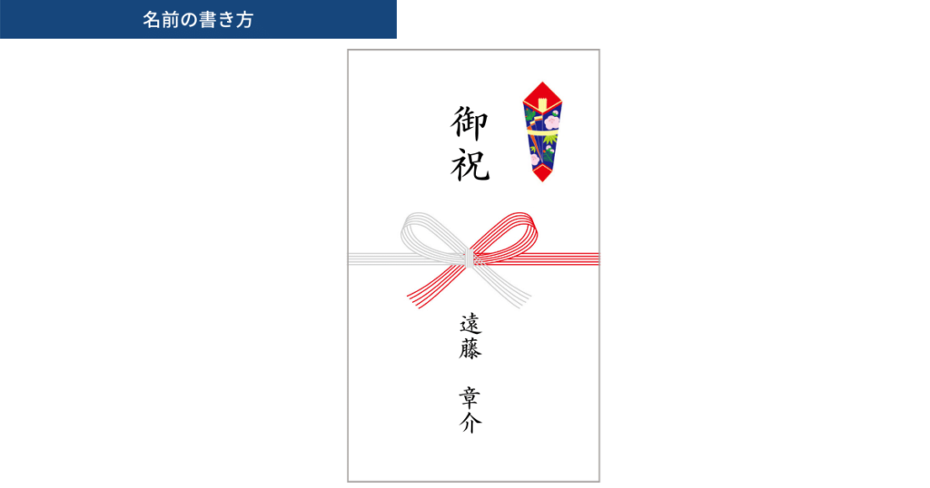 水引の下に、表書きの文字より少し小さめの文字でフルネームを記入します。