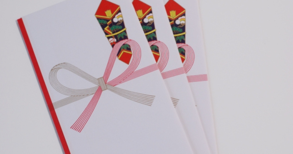 なお、10,000円以内の金額ならば、祝儀袋に水引が印字されたものを選択してもよいでしょう。一方、包む金額が10,000円を超えるならば、水引飾り付きの祝儀袋を使用するのが適当です。